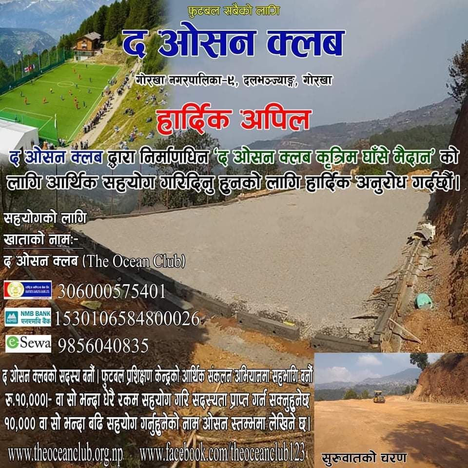 Appeal for a help July 16, 2020 Club news, Eventstheoceanclub We would like to request you everyone to donate for the ocean club artificial turf installation project.